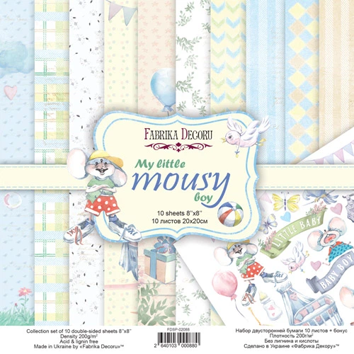 Набір дизайнерського паперу FD My little mousy boy 20х20см 200г 10л двостороння
