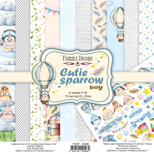 Набір дизайнерського паперу Fabrica Decoru Cutie sparrow boy 20х20см 200г 10л двостороння