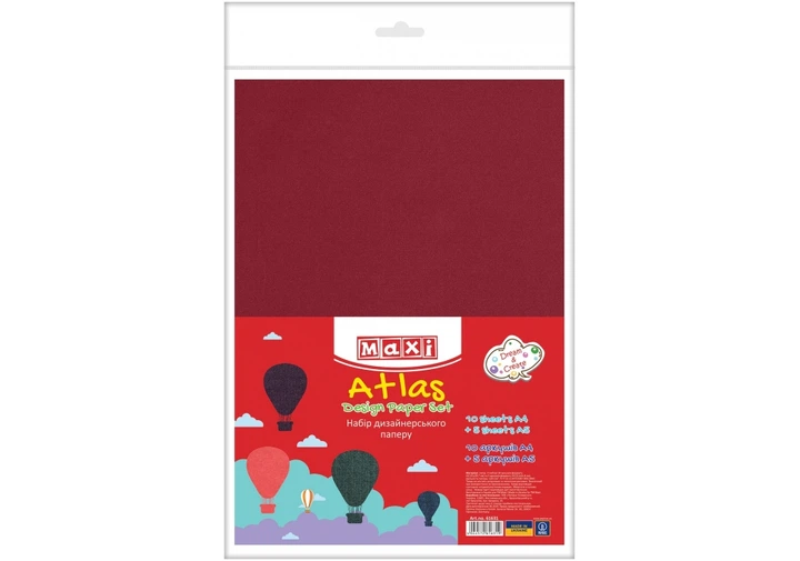 Набір дизайнерського паперу "Атлас" А4(21x29,7 см), 120г/м2, 10арк, односторонній+5 арк А5 (21х14,8