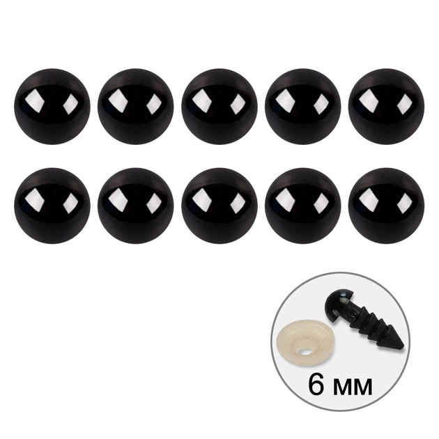 Набір "Шістка" (очі 6мм, 10 пар, чорні), комплект очей для створення іграшок, пластикові, пластикові очі з заглушками, для а