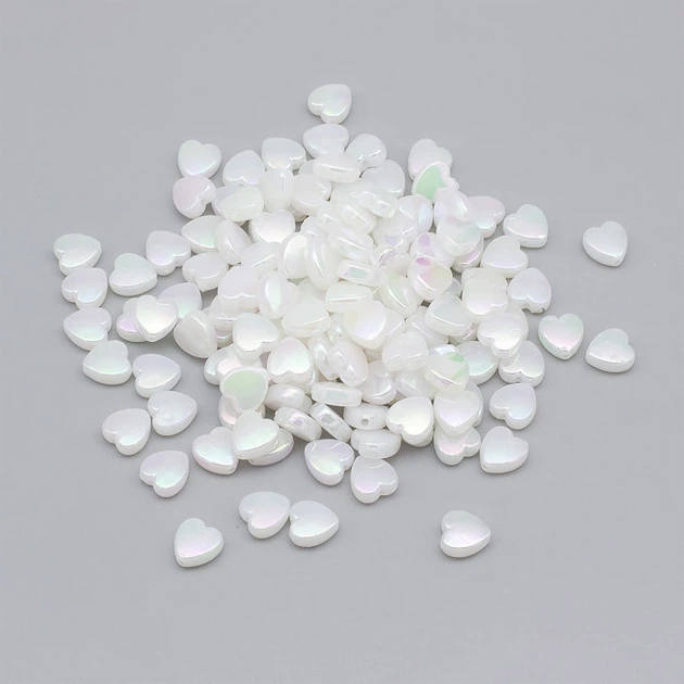 Намистини Акрил, Прозорі, АВ колір, Серце, Білий, 8х8х3мм, Отвір 1.5мм, близько 130шт/25г