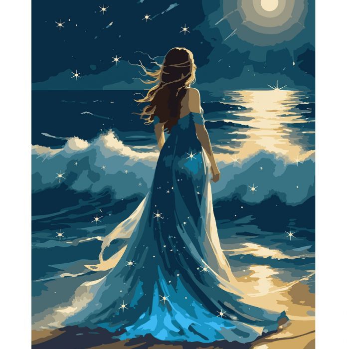 Картина по номерам Santi Дівчина і хвилі ночі, 40*50см, LED підсвітка (955105) 955105