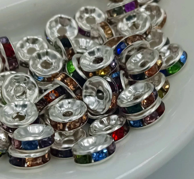 Намистини Розділювачі зі Стразами / -8 мм / Упаковка 40-45 шт / Срібло Мікс