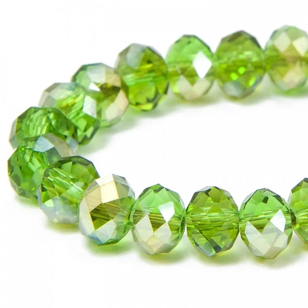 Намистини Гальваніка Скло АВ-Квітло, Грановані, Рондель, Зелений, 6х4мм, Отвір 1мм, близько 100шт/46см/нитка