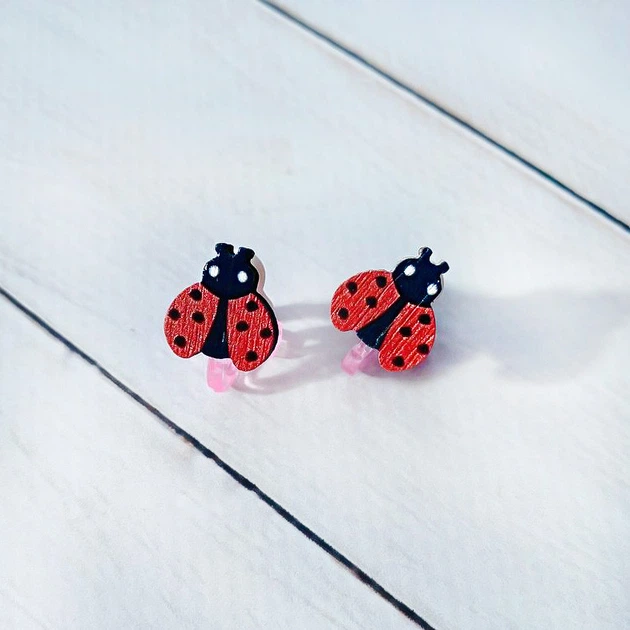 Дитячі сережки кліпси Божа корівка (принт k014)