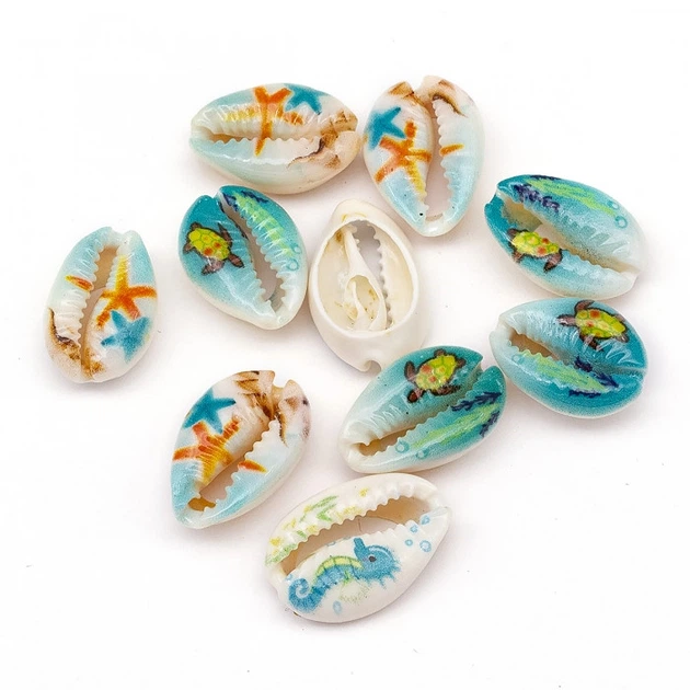 Морські Мушлі Каурі з Принтом, без отвору, Мікс, 18-22x13-14x6-8мм, 10 шт