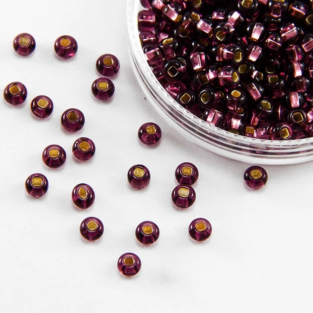 Бісер 27080 Чеський Preciosa 10/0, Прозорий зі срібною смугою, Фіолетовий, Круглий, 50 г