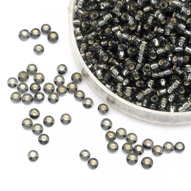 Бісер 47010 Чеський Preciosa 10/0, Прозорий зі срібною смугою TSL, Чорний, Круглий, 50 г
