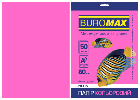 Папір кольоровий Buromax Neon А4 80гр 50 аркушів Малиновий (BM.2721550-29)