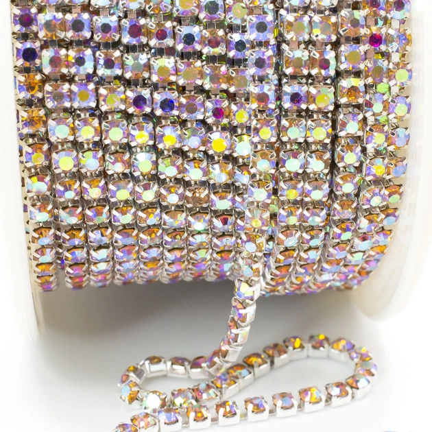 Стразовий ланцюг SS8 (2.5 мм) 1 м Light Peach AB silver (ЦС0802с88)