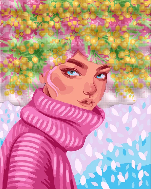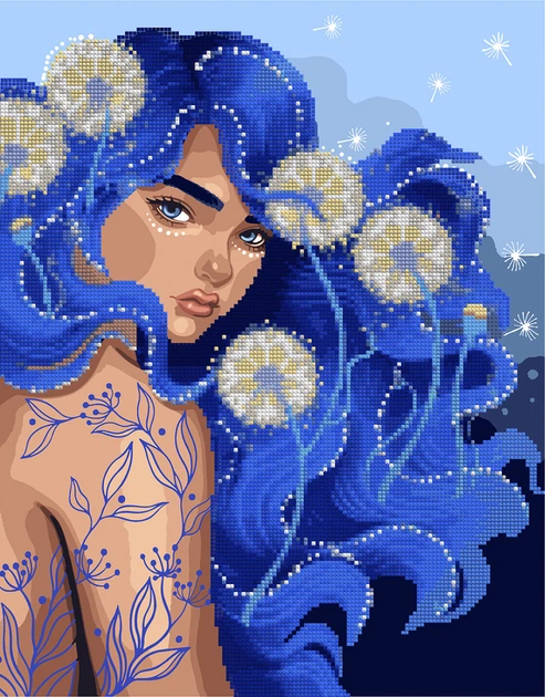 Картина за номерами Santi з алмазною мозаїкою Дівчина з блакитним волоссям 40х50 см (954869) (4823091916397)