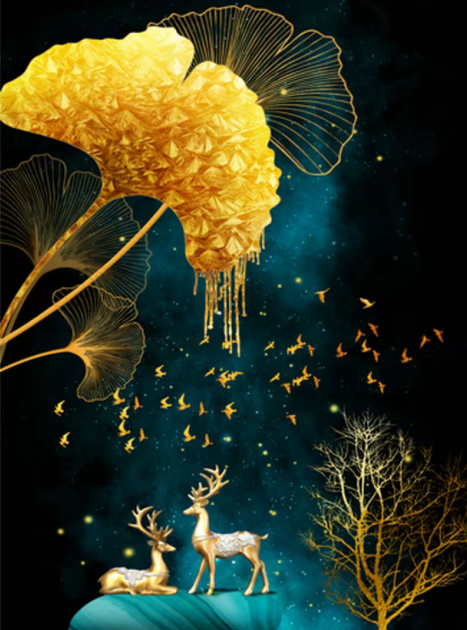 Алмазна мозаїка Олені в нічному сяйві (без підрамника) 30х40 см JSDF82142 (Strateg)