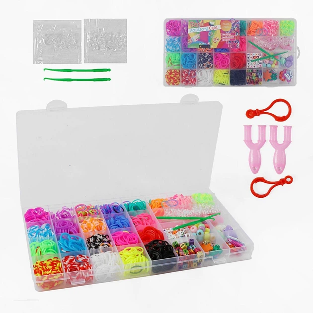 Набір резиночок для плетіння C 74659 23 кольора пластикова фурнітура гачок рогатка карабини намистинки у боксі 27 х 3 х 13 с