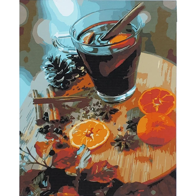 Картина за номерами Strateg ПРЕМІУМ Хвойний глінтвейн з лаком розміром 40х50 см (SY6861)