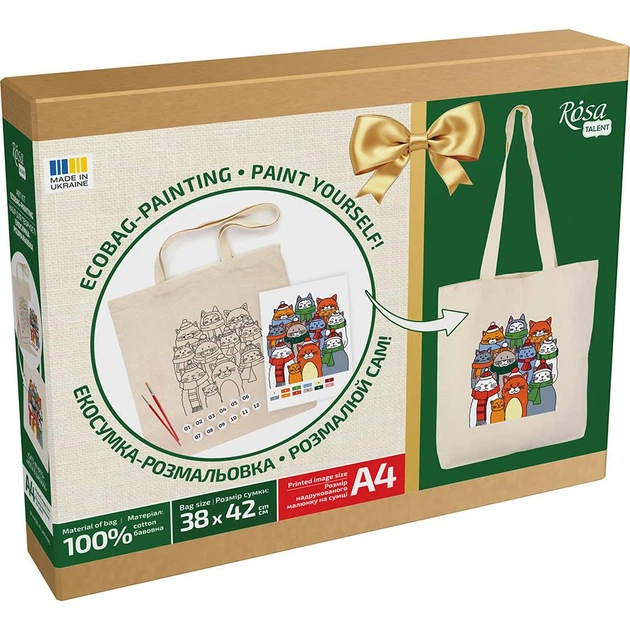 Набір еко сумка розмальовка за номерами для дітей дівчаток і хлопчиків Коти в шапках бавовна 220 г/м2 38х42см