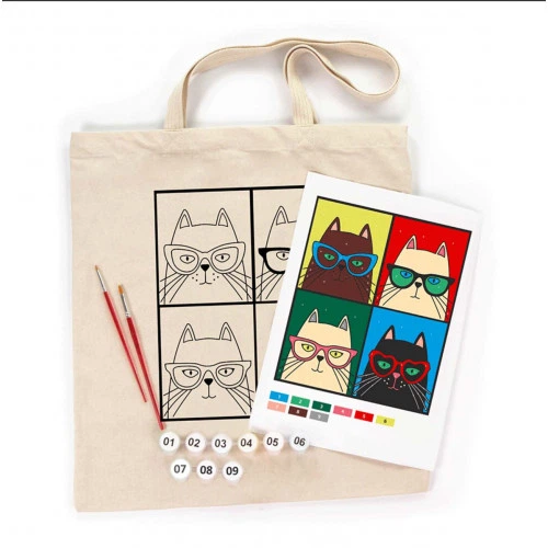 Набір екосумка-розмальовка ROSA Talent Коти в окулярах 38х42 см бавовна 220 г/кв.м (4823098541189)