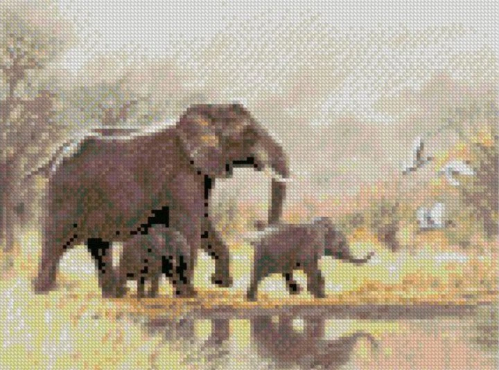 Картина за номерами з алмазною мозаїкою Стратег Слони на прогулянці 30х40см (HX321)