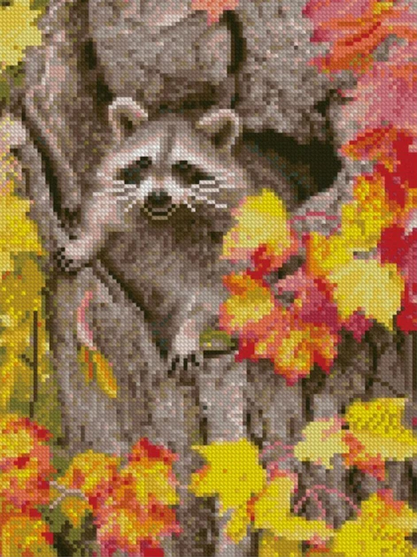 Алмазна картина за номерами Strateg Єнотик восени 30х40 см (HX182) (4823113815196)