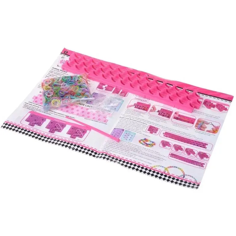 Набір для плетіння, нитки, 2 заколки, 2 кільця, 6 наборів бусин, наліпки, станок, дзеркало