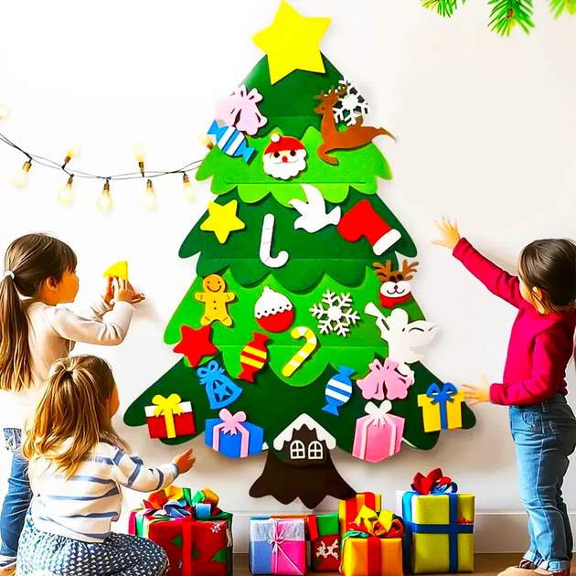 Ялинка новорічна + 25 іграшок з фетру, на липучках (100х59см) Chrismas Free / Різдвяна дитяча ялинка (L)