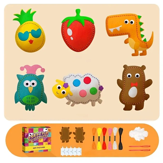 Набір для шиття з фетру «Тварини з фруктами» – комплект для творчості, 6 іграшок своїми руками, нитка, безпечна пластикова г