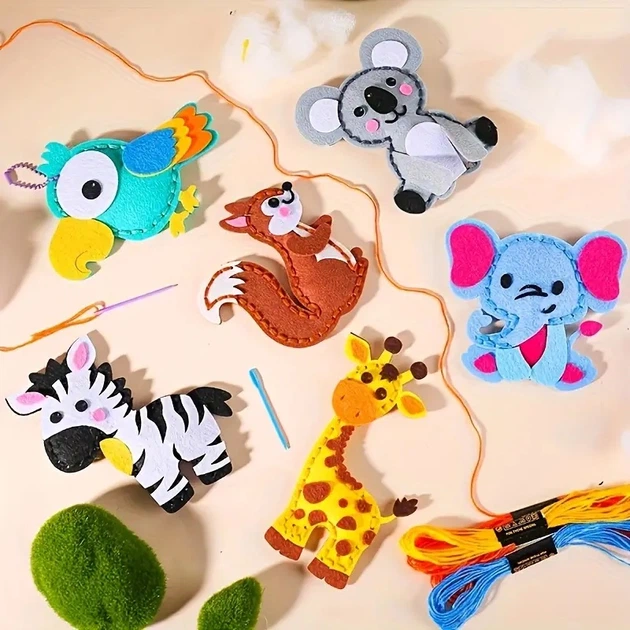 Набір для шиття з фетру "Тварини" – комплект для творчості, 6 іграшок своїми руками, нитка, безпечна пластикова голка