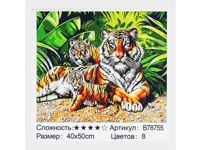 Алмазна мозаїка та картина за номерами 2 в 1 Сімейство тигрів, TK Group (40х50 см), B 78755