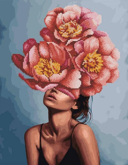 Алмазний живопис та картина за номерами 40х50 Дівчина в квітучій півонії GZS1189