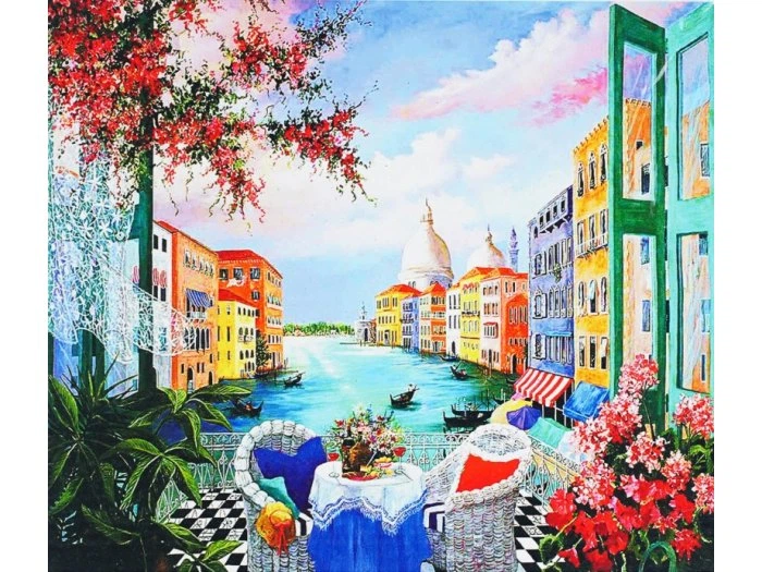 Алмазна мозаїка та картина за номерами 2 в 1 Сніданок у Венеції, TK Group (40x50 см), B 74380