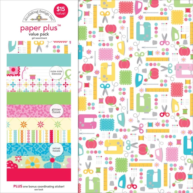 Набір паперу Doodlebug Girl 30х30 см 8 аркушів + наклейки , артикул PPAP-5186