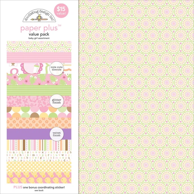 Набір паперу Doodlebug Baby Girl, 8 листів + лист з наклейками , артикул PPAP-5184