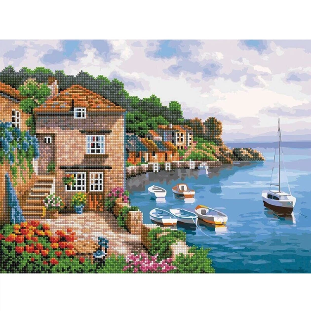 Картина за номерами + Алмазна мозаїка "Міська пристань"