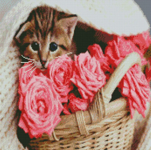 Алмазна картина за номерами Котик у кошику 50х50 см GA0012 (Strateg)
