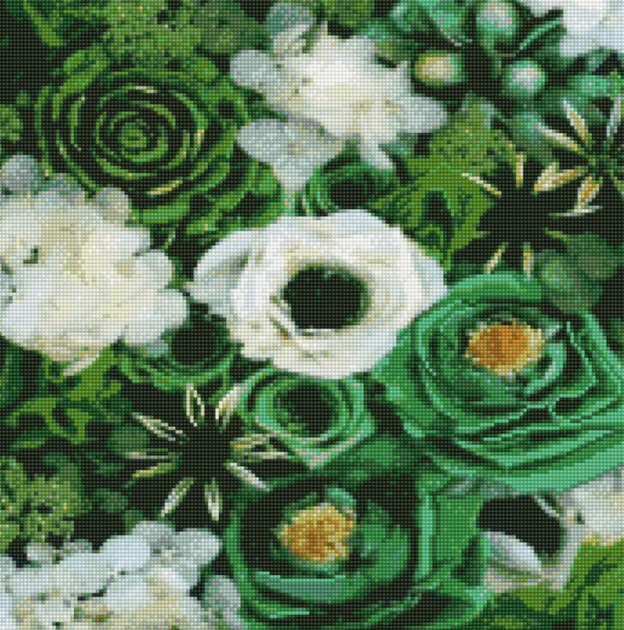 Алмазна картина за номерами Зелені відтінки квітів 50х50 см GA0001 (Strateg)