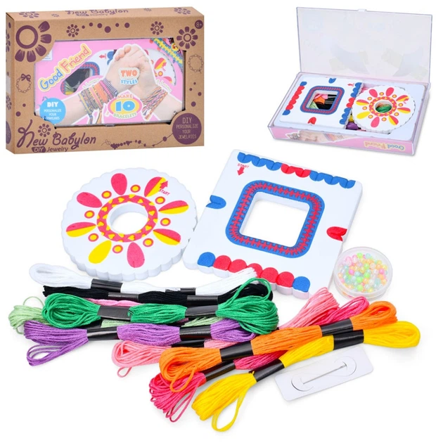 Набір для плетіння, нитки, 2 заколки, 2 кільця, 6 наборів бусин, наліпки, станок, дзеркало