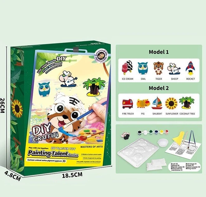 Гіпсова розмальовка ZY 103 магнітні наліпки, молди, акрилові фарби, гіпс, пензлики, шпатель, в