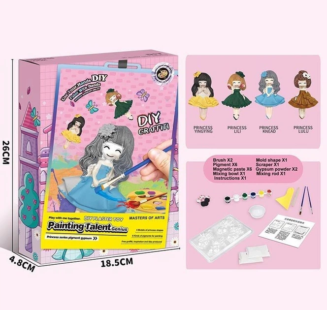 Гіпсова розмальовка ZY 110 A “Принцеси”, магнітні наліпки, молди, акрилові фарби, гіпс, пензлик