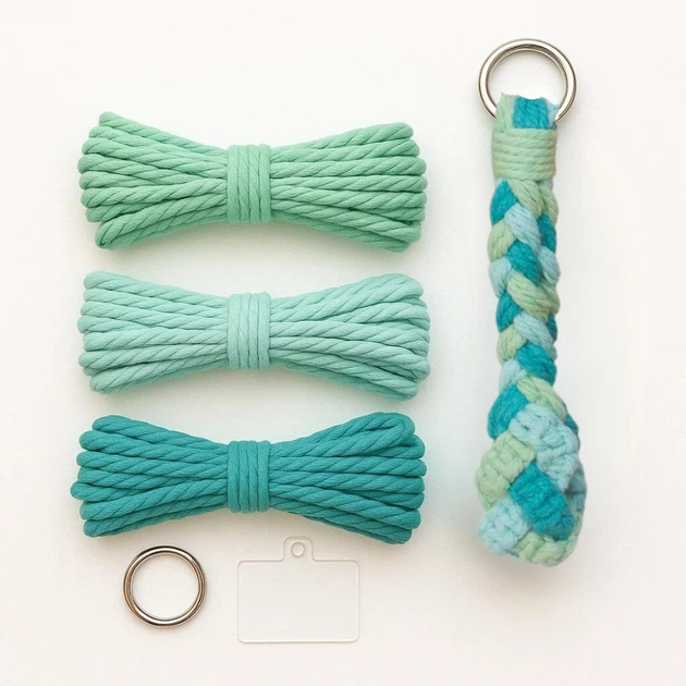 Набір макраме для рукоділля та плетіння брелока для ключів і аксесуарів 17.3х3.5см зелений, блакитний, бірюзовий