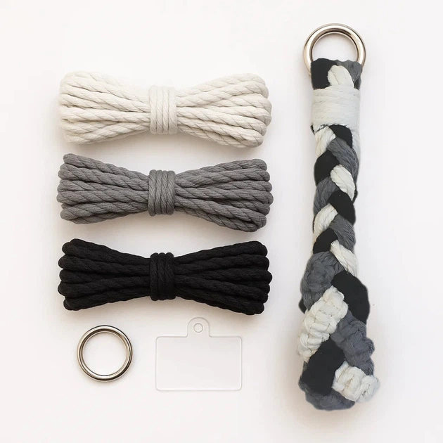 Набір макраме для рукоділля і плетіння брелока для ключів і аксесуарів 17.3х3.5 см колір білий,сірий,чорний