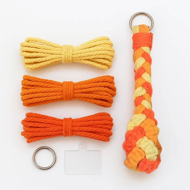 Набір макраме для рукоділля та плетіння брелока для ключів та аксесуарів 17.3х3.5 см триколірний помаранчевий 5088574