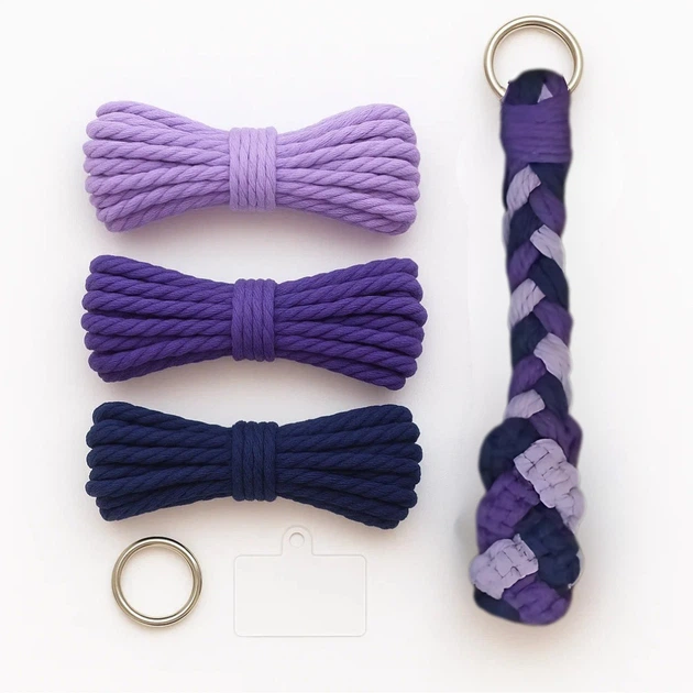 Набір макраме для рукоділля та плетіння брелока для ключів і аксесуарів 17.3х3.5см триколірний фіолетовий