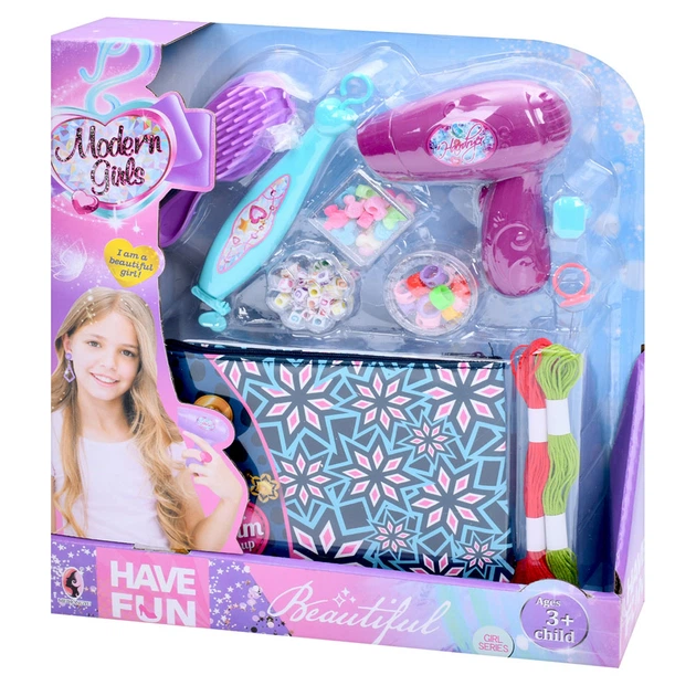 Набір для творчості Набір перукаря, намистини, нитки, пристрій для плетіння, фен, гребінець