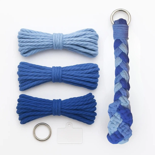 Набір макраме для рукоділля та плетіння брелока для ключів та аксесуарів 17.3х3.5см триколірний синій 5088578