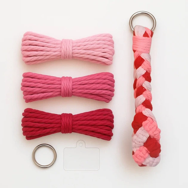 Набір макраме для рукоділля та плетіння брелока для ключів та аксесуарів 17.3х3.5 см триколірний рожевий 5088575