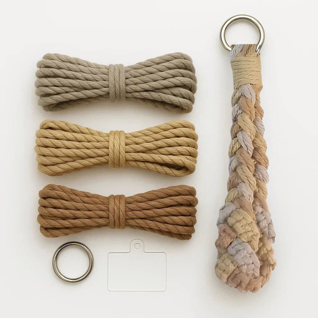 Набір макраме для рукоділля і плетіння брелока для ключів і аксесуарів 17. 3х3.5см сірий, бежевий, коричневий