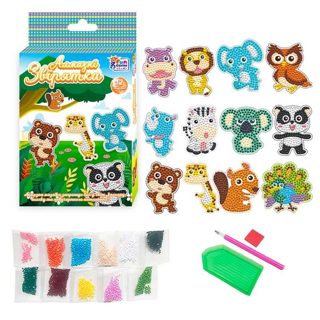 Алмазна мозаїка "Звірята" 20299 4FUN Game Club, наклейки, стілус, силіконовий клей, піддний, алмази, в коробці (694571741242