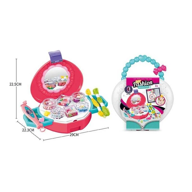 Набір для плетіння KL 7788, нитки, 2 шпильки, 2 кільця, 6 наборів бусин, наліпки, верстат для плетіння, зеркало, у сумці