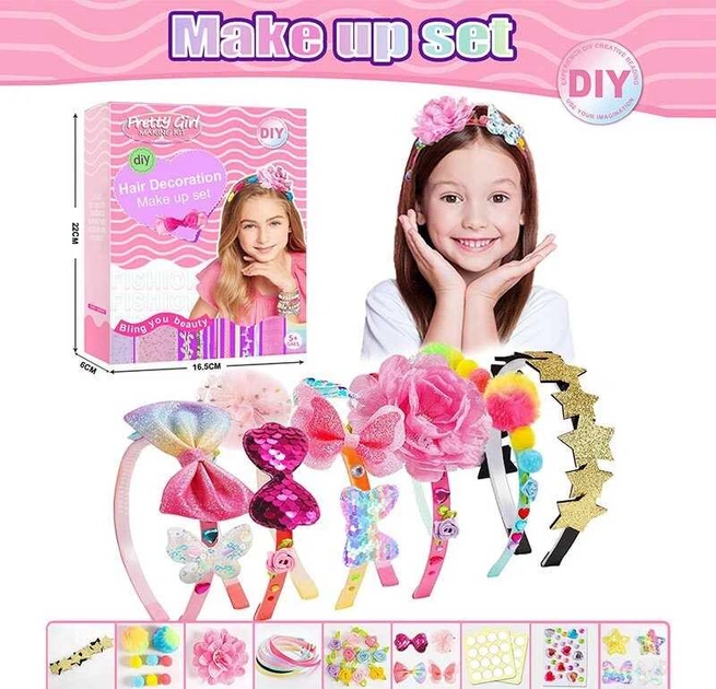 Набір прикрас L 5303 6 обручів, декоративні текстильні елементи, двосторонні наліпки-фіксатори, в коробці