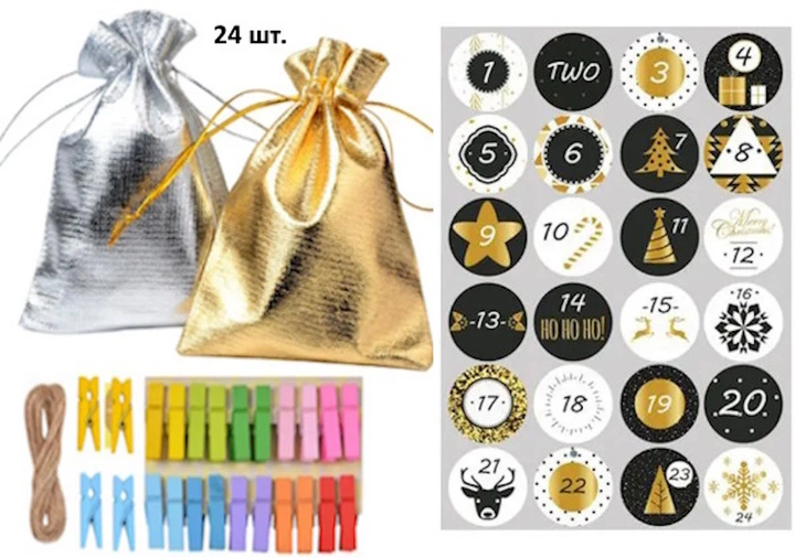 Адвент календар на 24 дні. Мішечки, наліпки -76159