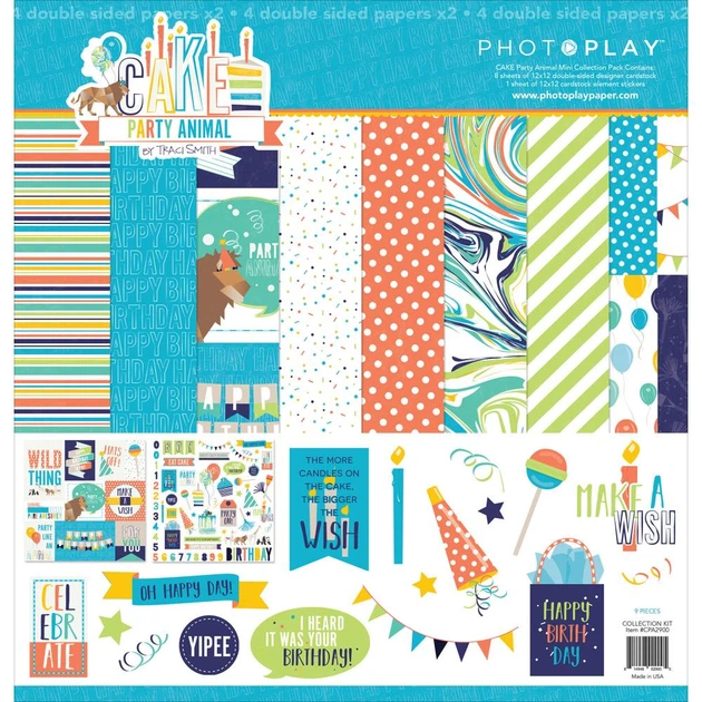 Набір скраппаперу Photo Play Cake Party Animal 8 двустор листів + наклейки, артикул CPA2900N